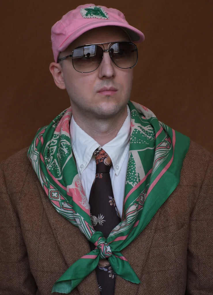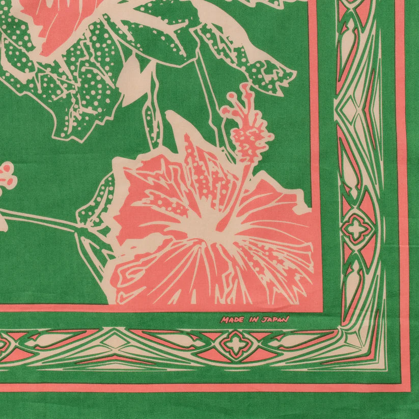 In my constant pursuit of interesting bandanna designs, I came up with the idea of a style that balanced out weirdly. Contemplating the queens of Japanese street fashion, gyaru, and placing them in the epicentre of runway-ridiculousness, Paris, seemed like the perfect balance of aesthetics. The design of this monstrosity is centered around that age-old symbol for gyaru, the hibiscus. It features a few different species that look nice on a two-dimensional surface. The leaves added a background texture that exudes the social status of many famous Paris fashion houses.