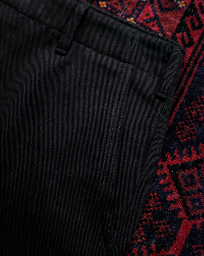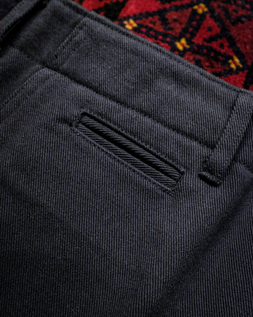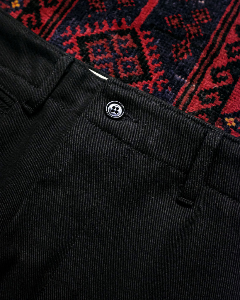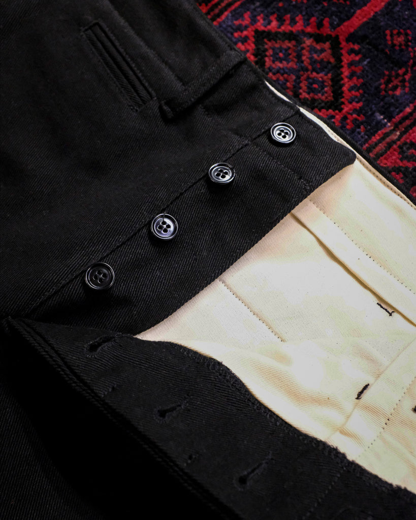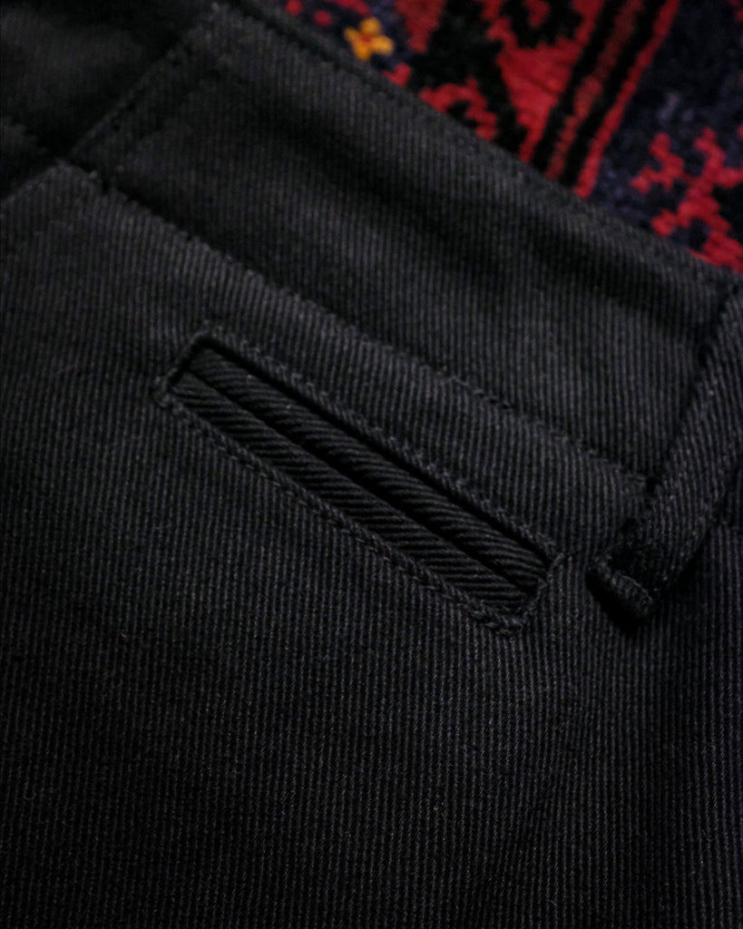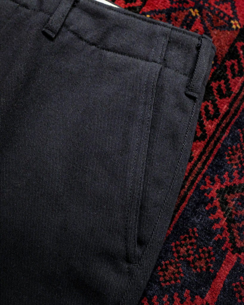 These are heavy twill cotton trousers made in a dressy style based on the original military chinos from the 40s.