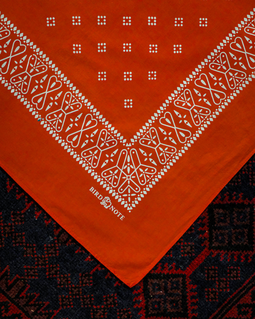 This Birdnote bandana is made of 100% COTTON, with a density and weave that reflect its vintage origins. The touch feel is reminiscent of vintage bandanas, and all printing methods and techniques are inspired by American vintage bandanas.