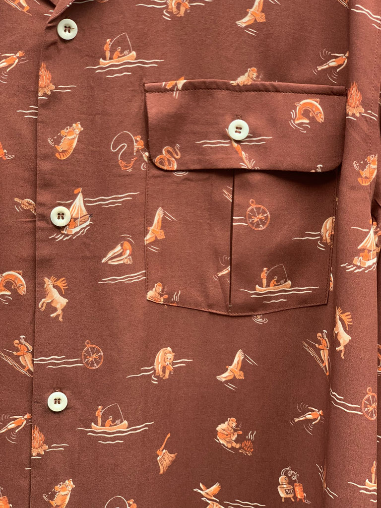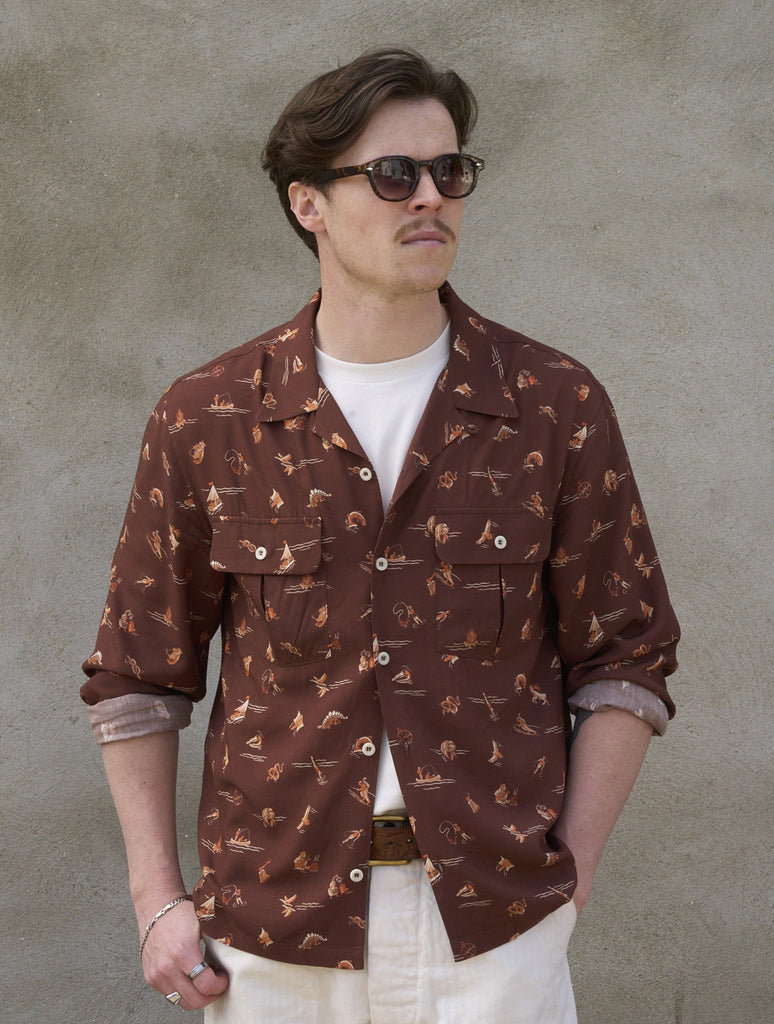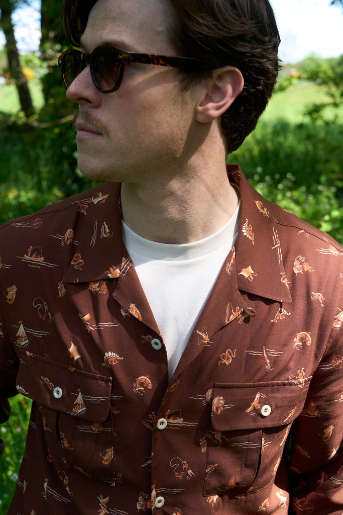 The Exploration shirt features a selection of outdoor inspired scenes hand-drawn in our London studio and translated into this vintage styled garment. These different images can be seen across the other products of this collection, celebrating the activities and sights of the great outdoors.