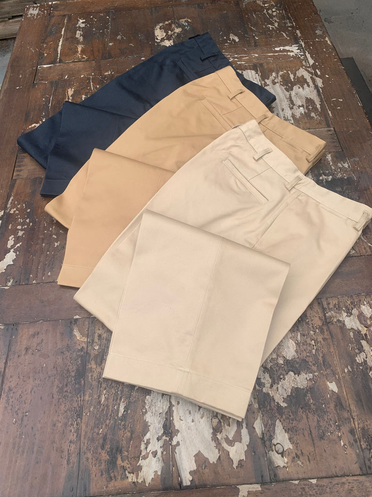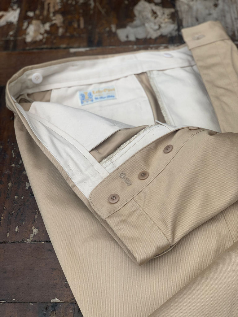Crafted with a timeless silhouette, these 100% cotton trousers boast wide knees and a slightly tapered hem inspired by the mid-1930s to early 1940s.