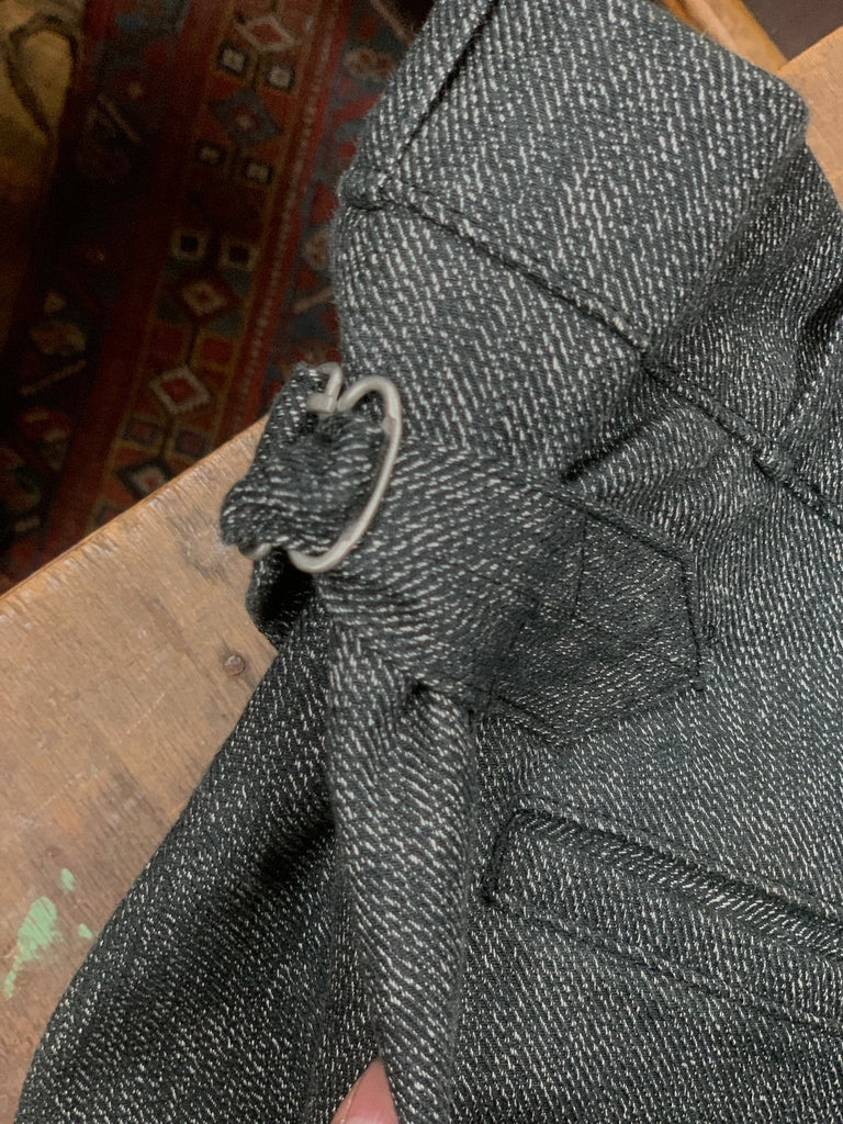 Expertly crafted with heavy chambray fabric, these 30s buckle bank wide-leg trousers from Belafonte Ragtime Clothing add a touch of vintage charm to your wardrobe. In a salt and pepper charcoal/black colour, they exude a sophisticated yet understated style that is sure to elevate any outfit.