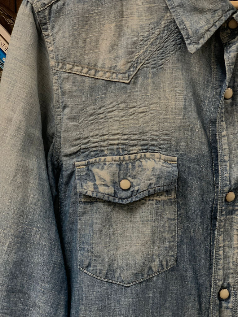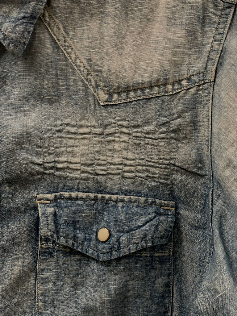 Fundamental Japan - Vintage Denim Shirt, the perfect blend of style and comfort. Made with high-quality denim, this shirt offers durability and a timeless look. Its vintage design exudes a sense of sophistication and the blue color adds a touch of elegance. Elevate your wardrobe with this classic piece.