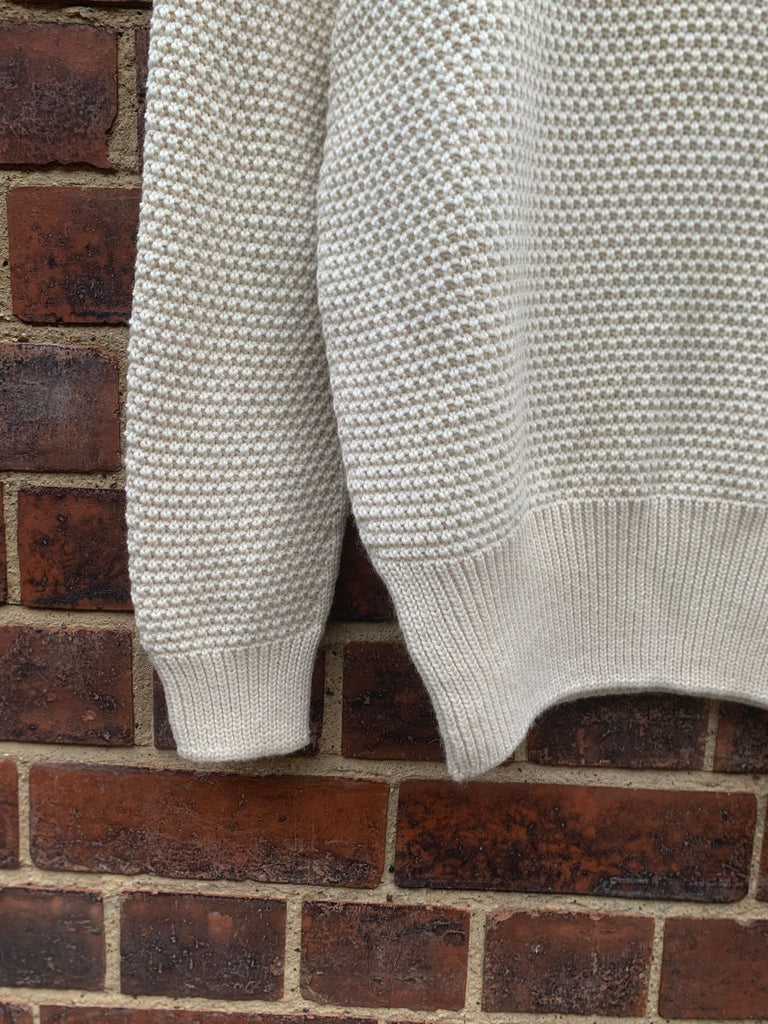 Knitted in England from 100% Merino Wool this moss stitch pattern provides a slim fit with huge amounts of stretch making it a versatile garment which can be worn over layers or in between.