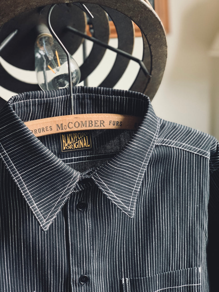 Black PP's classic yarn-dyed shirt, finished with a white chalk stripe and with a regular fit. Details on this shirt include a nut material button and two open chest pockets.