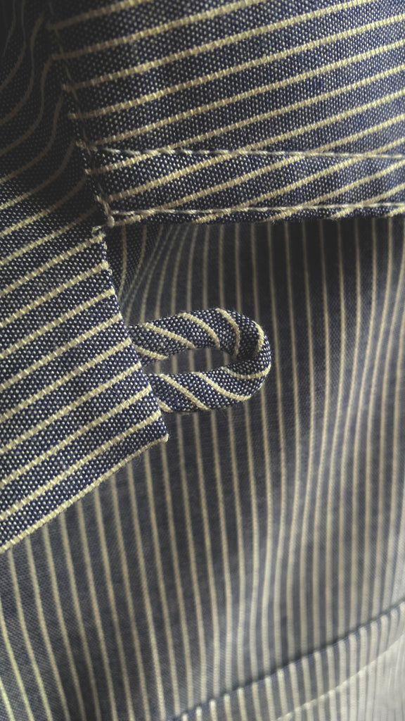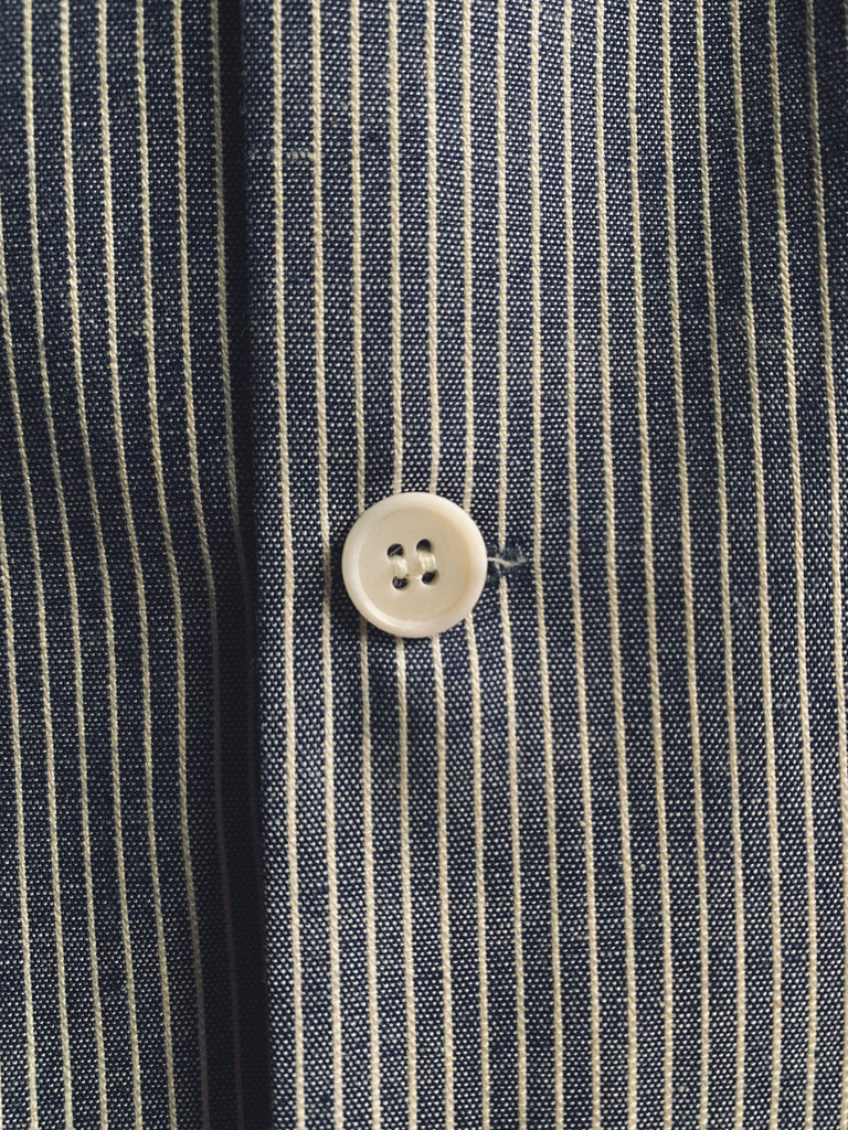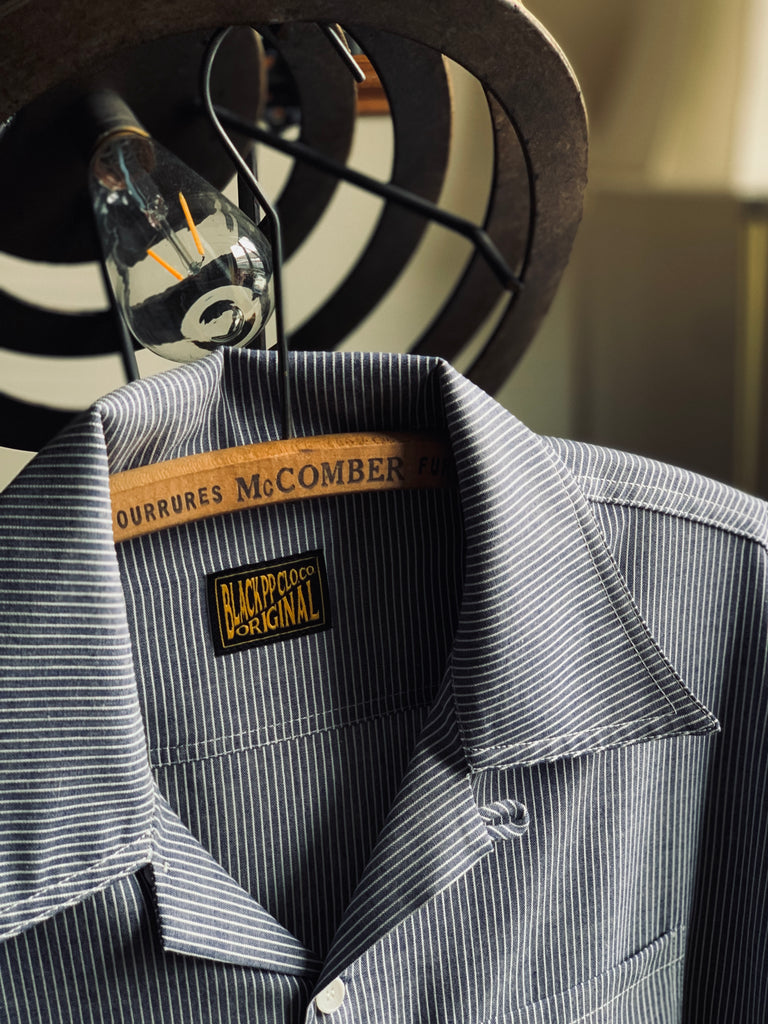 Black PP Open Collar Shirt - Blue Pencil Stripe