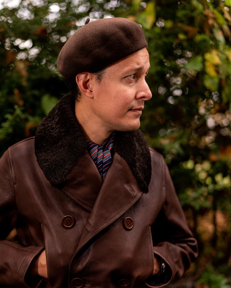 Traditionally styled, small Anglo-Basque beret made in a European beret workshop. Made of wool and available in dark brown and navy.