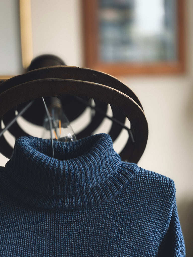 Knitted from a full kilogram of premium virgin wool, this weighty roll neck is Heimat's take on the classic submariners jumper, worn above and below the waves during WWII. Not only is the wool heavy, but so is the gauge s a hearty 5-gauge knit thats designed to keep you warm on even the coldest of days. Made from extra-long fibres, its highly resistant to pilling and will look continue to look fantastic even after years of regular wear, and unlike most knitwear producers we leave the natural oils in the wool yarn, meaning our jumpers have self-cleaning and water-resistant properties.