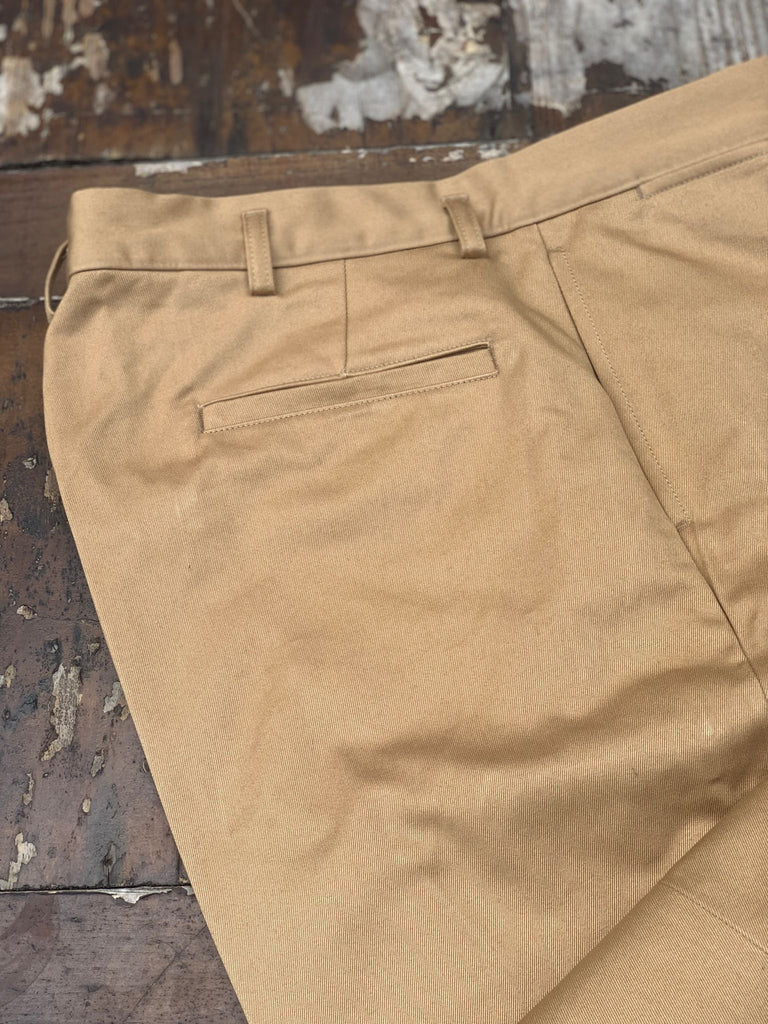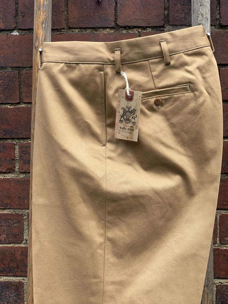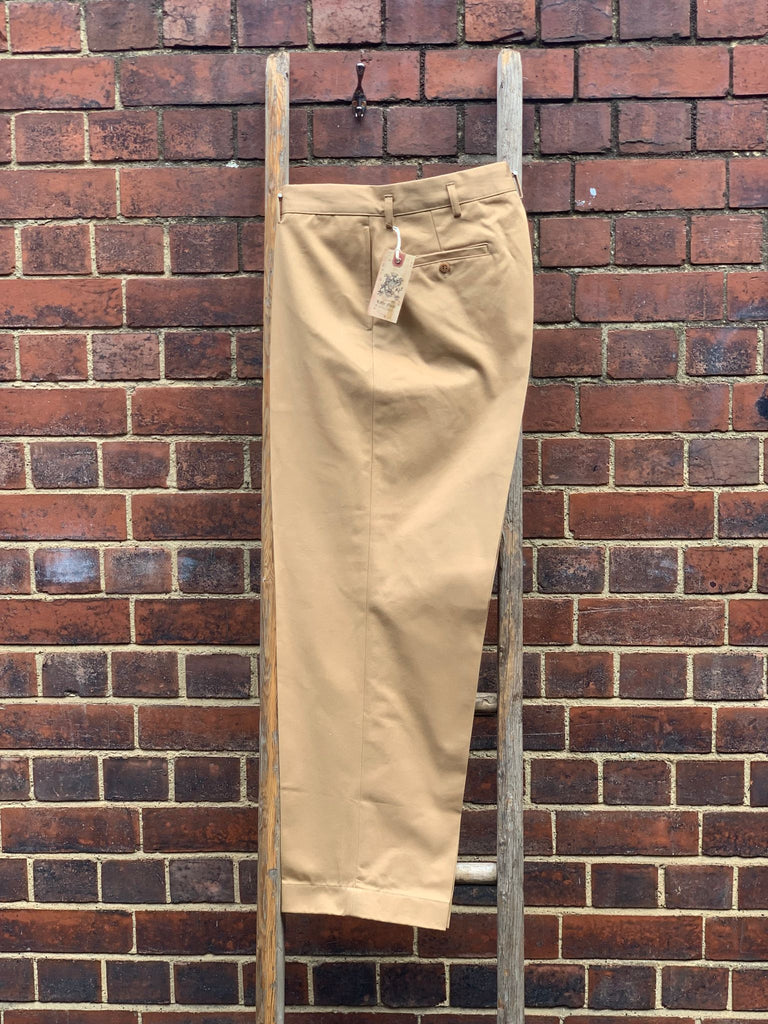 Crafted with a timeless silhouette, these 100% cotton trousers boast wide knees and a slightly tapered hem inspired by the mid-1930s to early 1940s.