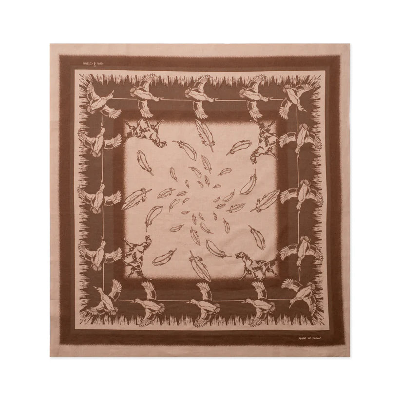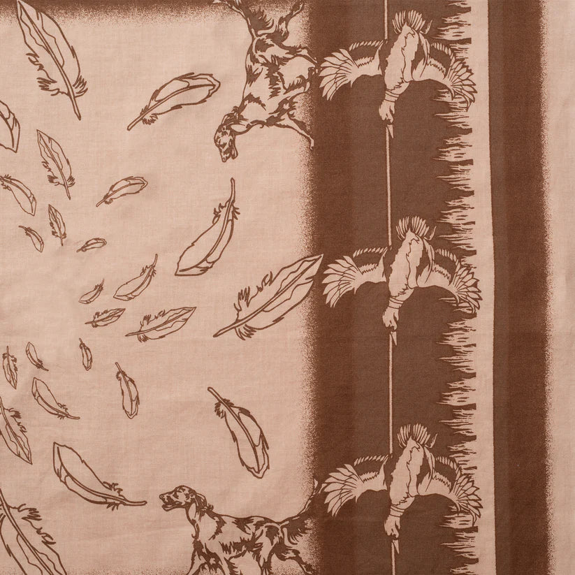 LOL Bean is a playful homage to one of our favourite vintage items. LL Bean first produced a duck blanket back in the 1930s. The blanket's simple, soft colours and tranquil scene of ducks flying over a grassy marsh are great designs. We have redrawn some of the elements from the blanket and reinterpreted them into LOL Bean. Ducks are circling some Irish Setter dogs in a sort of playful mockery, all the while dropping feathers on them.