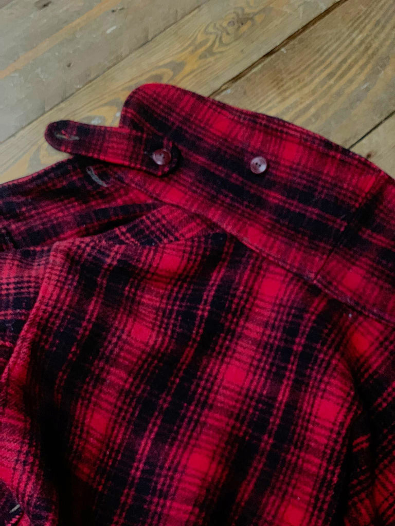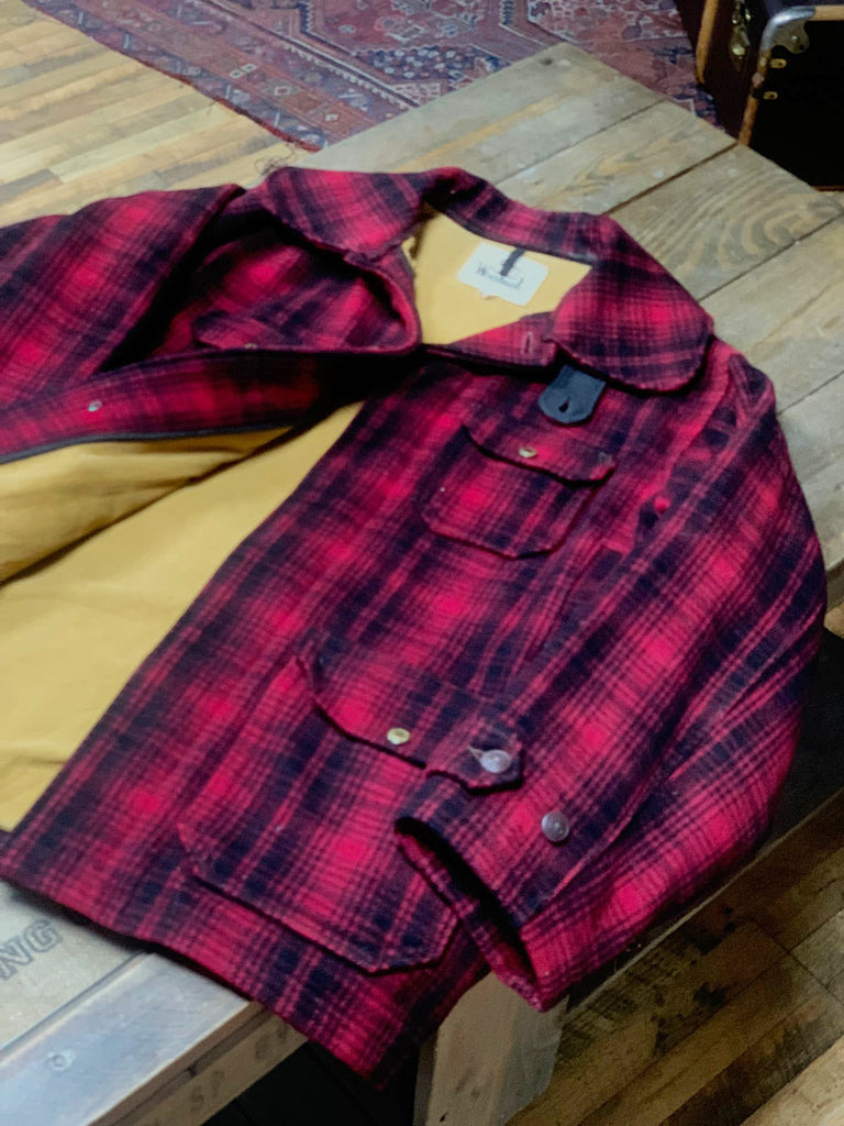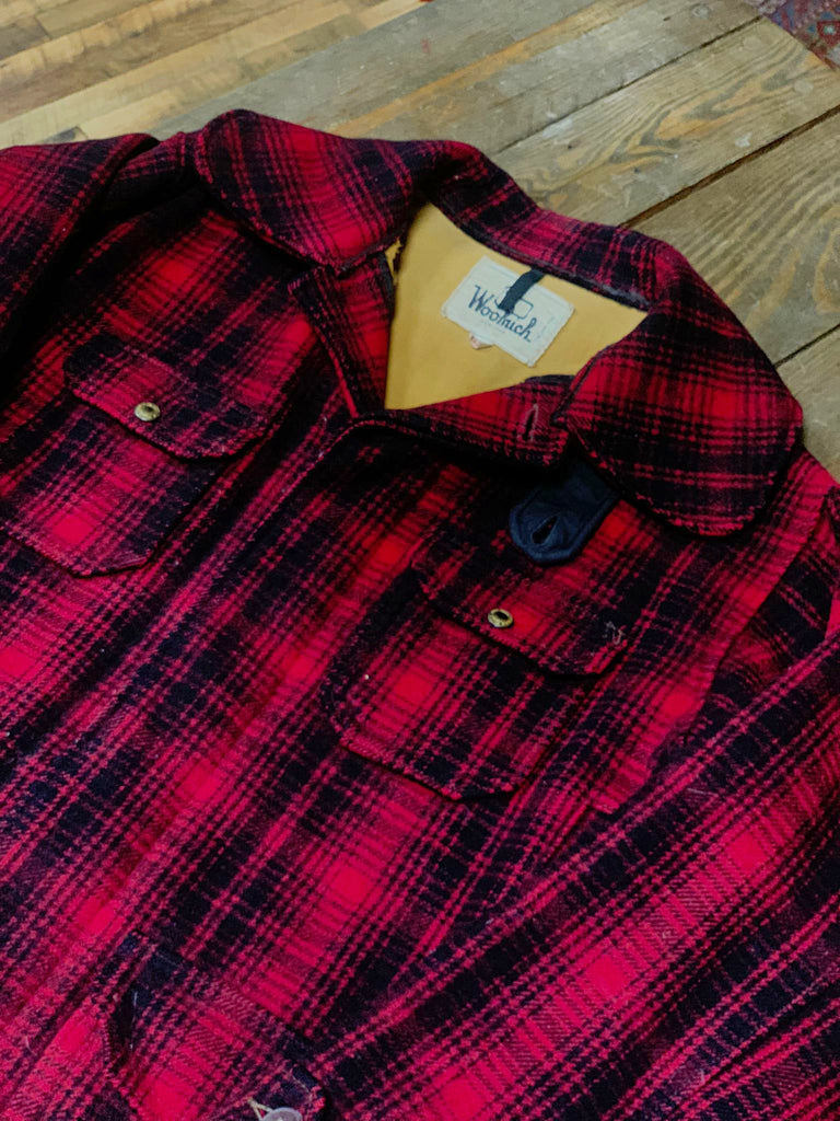 Stay warm and stylish with the Woolrich 60’s plaid Hunting coat. Made in the USA, this coat features a fleece lining and leather collar fastening for added comfort. Perfect for outdoor adventures.